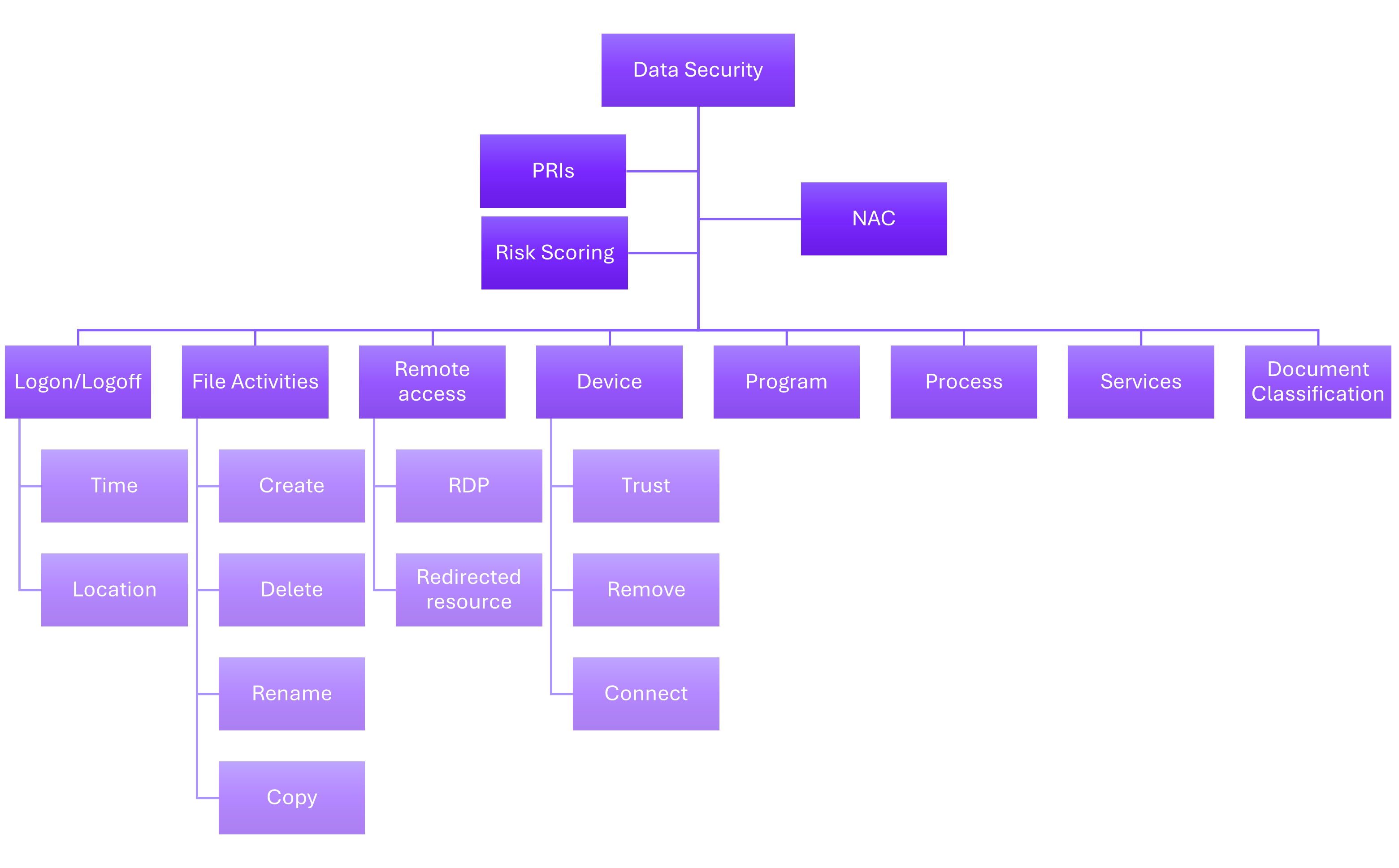 沒有單一個感測器可以檢測到內部威脅;它是收集來自身分、端點、資料和網路活動的融合。有了這些資訊組成條件,還能回饋到下列的應用