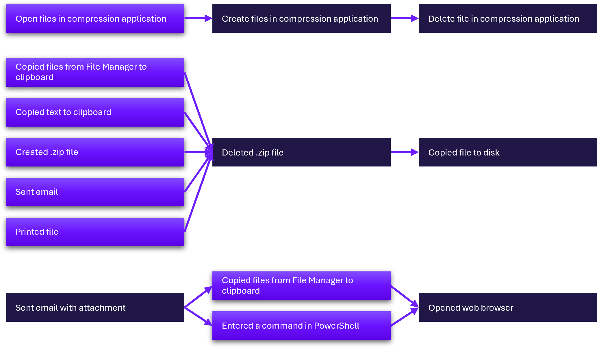 Open files in compression application | DLP, UAM: User activities| File activities |