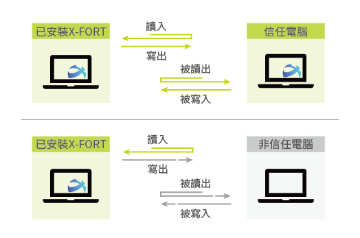 - 控管讀入:使用者電腦可讀取其他無X-FORTAgent或非信任電腦的共用資料夾。